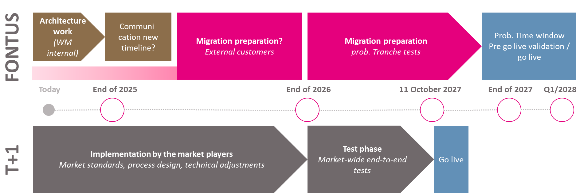 Fontus remains a central infrastructure project – and the postponement until (probably) 2028, which has now been announced for the first time, underlines the importance of realistic planning and professional support. At the same time, other major projects such as T+1 and UNO are entering the implementation phase – with similarly high requirements in terms of system stability and processing speed.
