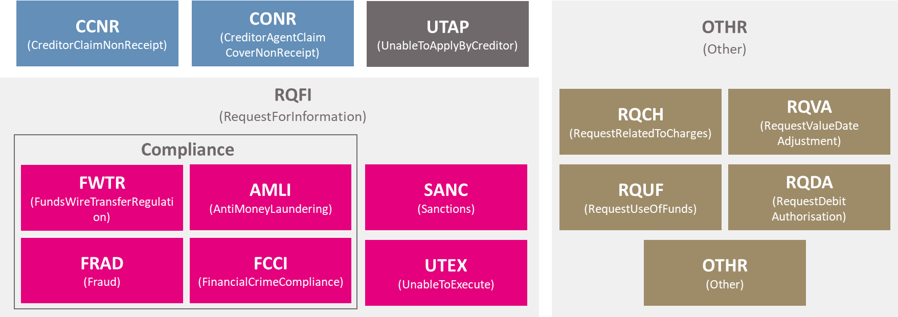 SWIFT hat mit den Investigation Request Cases einen sehr wichtigen Schritt gemacht, um Struktur in ein bislang stark unstrukturiertes Feld zu bringen. Insgesamt sind acht Investigation-Types definiert, etwa UTAP, CCNR, CONR oder RQFI. Das Problem aus Bankensicht ist weniger die Idee dahinter, sondern die Tatsache, dass der Case-Typ OTHR als Ausweichlösung zu den definierten Investigation-Types verwendet werden kann.